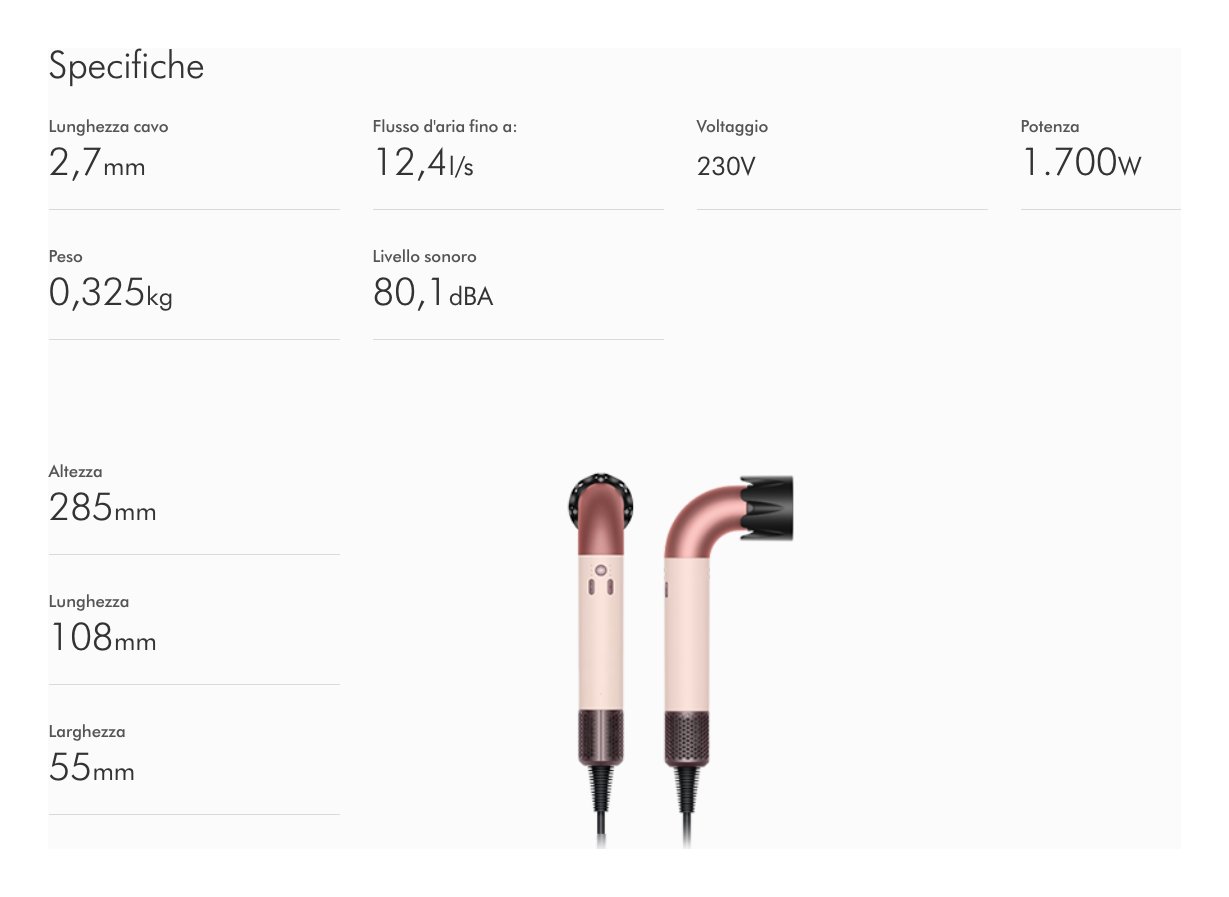 Completo di concentratore professionale, beccuccio lisciante, accessorio per il finish, accessorio gentle air, accessorio potente per l'asciugatura