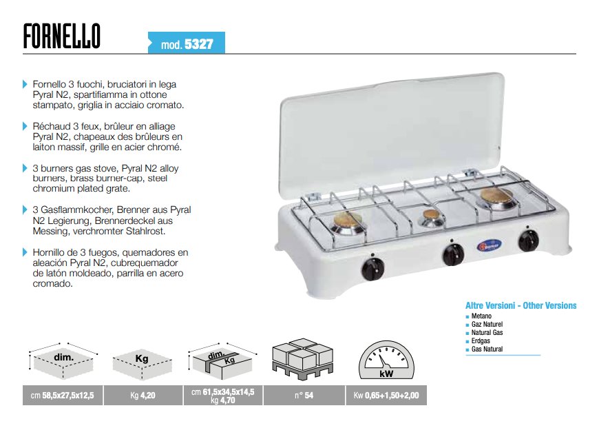Fornello 3 zone cottura GPL 5327C Bianco (58,5x27,5x12,5cm)