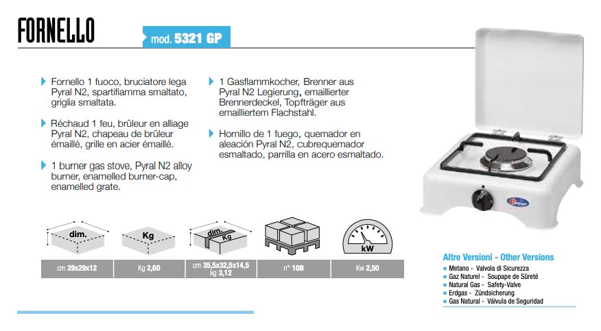 Fornello 1 zona cottura Metano 5321CGPM Bianco (29x29x12cm)