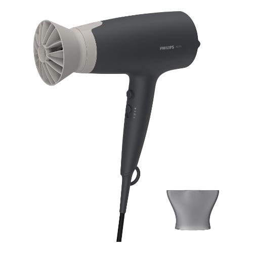 Trattamento Ionic Care avanzato per capelli luminosi, senza effetto crespo. L'esclusivo accessorio ThermoProtect crea un potente mix di aria calda e fredda per un uso quotidiano.