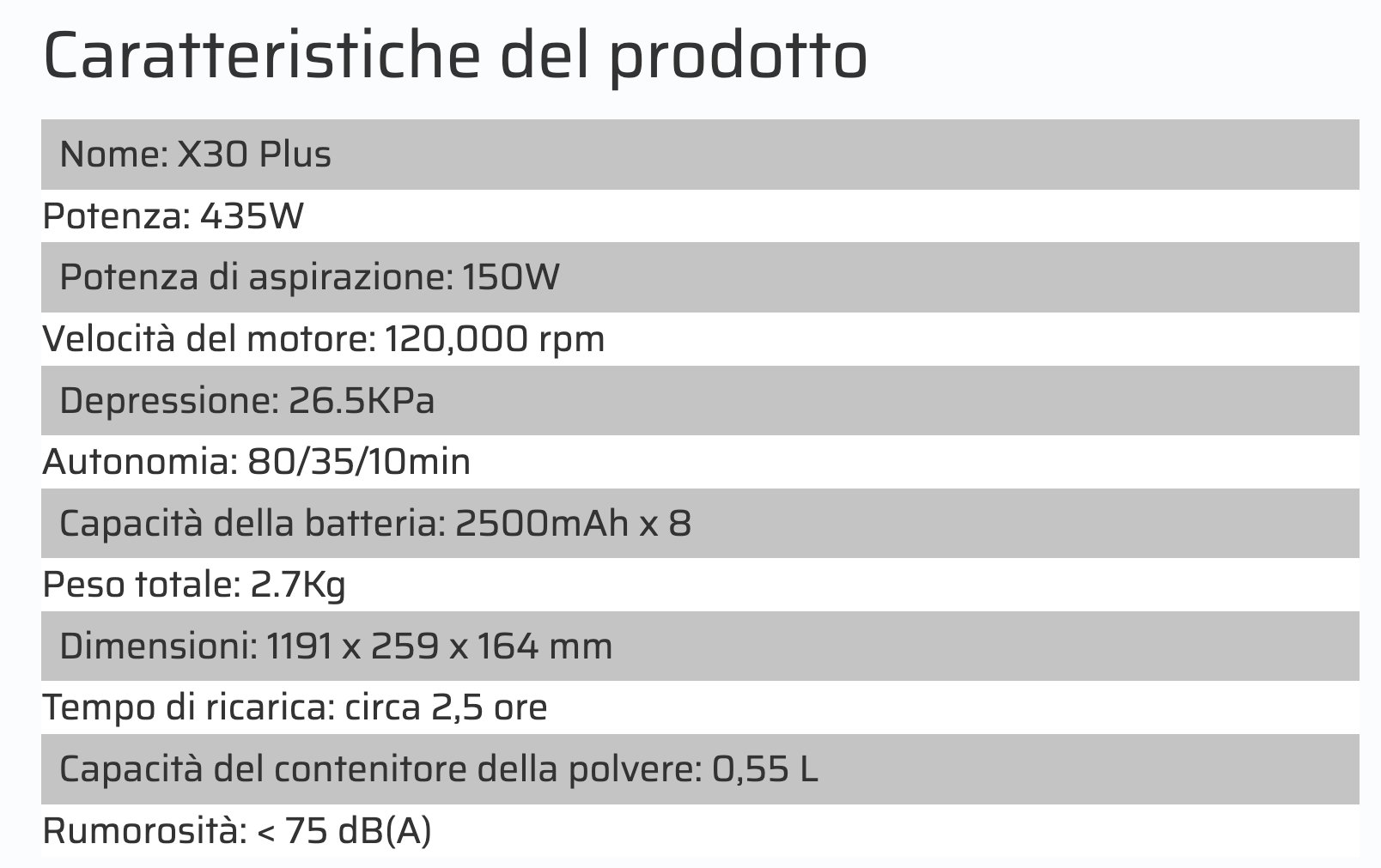 L'aspirapolvere senza fili X30 Plus offre una pulizia potente ed una batteria ancora più duratura. E'un prodotto silenzioso, facile da usare che permette di aspirare e lavare il pavimento in modo efficace ed accurato semplicemente utilizzando le due spazzole elettriche dedicate in dotazione. Dotato inoltre di display intelligente LED bianco e nero per avere informazioni sulla pulizia in tempo reale.
