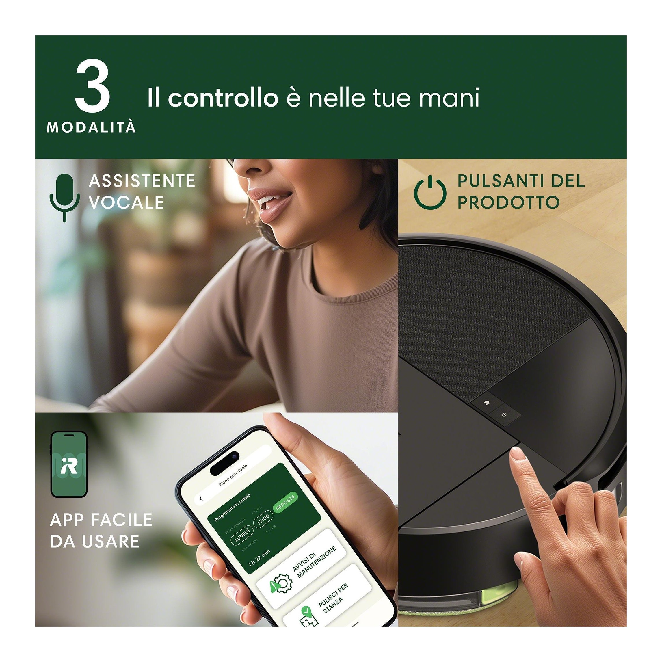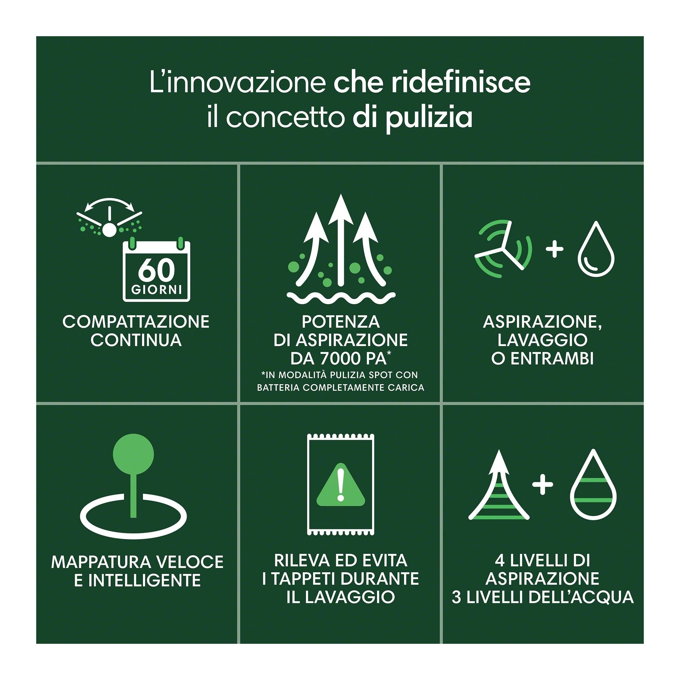 Il Roomba 205 DustCompactor Robot è dotato di un'innovazione leader del settore al suo interno. I detriti vengono aspirati, compattati in modo continuo e contenuti all'interno del robot per un massimo di 60 giorni. I pavimenti sono pronti per essere utilizzati a piedi nudi grazie ad un'aspirazione più potente e uno strofinamento 2 volte più profondo utilizzando un panno in microfibra riutilizzabile e lavabile.