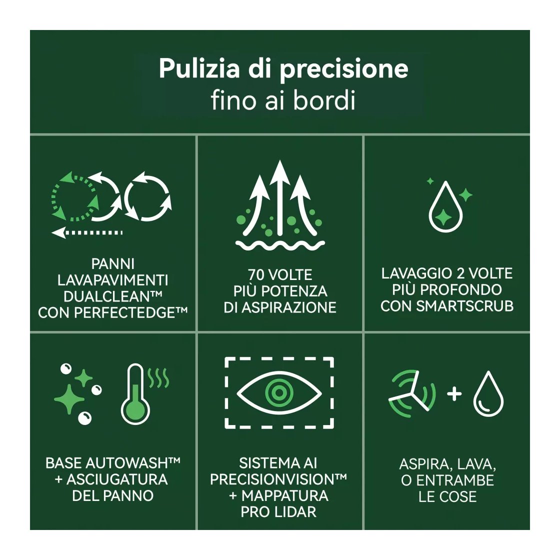 Il Roomba Plus 505 Combo Robot + Dock AutoWash con DualClean PerfectEdge estende il panno del mocio più vicino ai bordi. Il dock dinamico svuota automaticamente i detriti, rinfresca i panni del mocio durante la pulizia, quindi lava e asciuga a caldo i panni e si autopulisce al termine per mantenere tutto fresco.