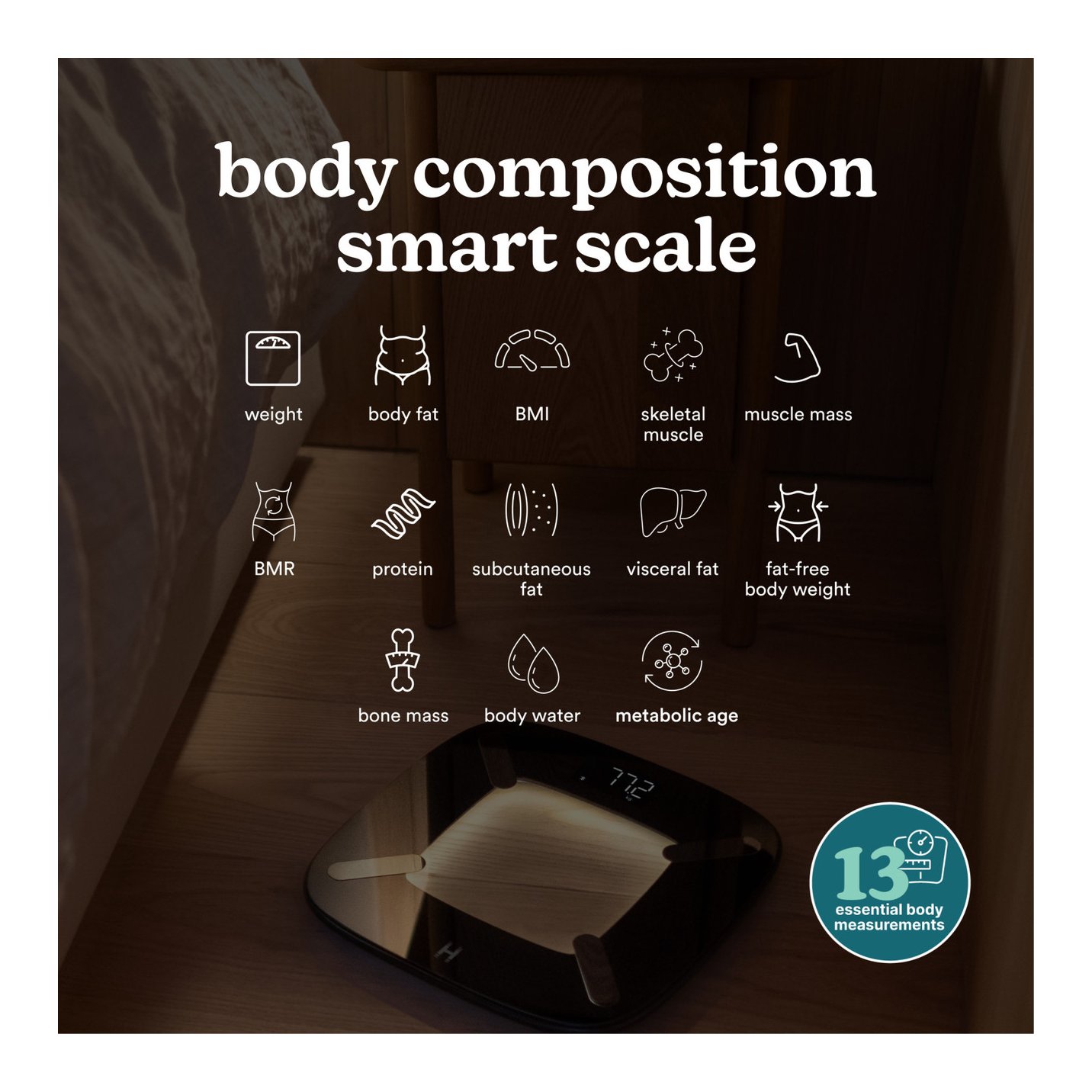 Migliora il monitoraggio della tua salute e aggiungi stile al tuo spazio con la bilancia Homedics glo Body Analyser. Tieni traccia del tuo peso e accedi a 13 dati biometrici essenziali tramite la nostra app di facile utilizzo. Con illuminazione ambientale con sensore di movimento e rifinita con un design elegante e arrotondato per completare qualsiasi interno del bagno.