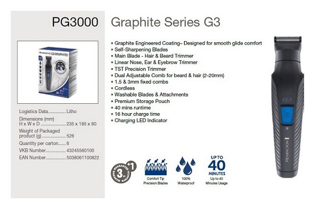 Regolabarba GRAPHITE SERIES G3 Ricaricabile Black PG3000