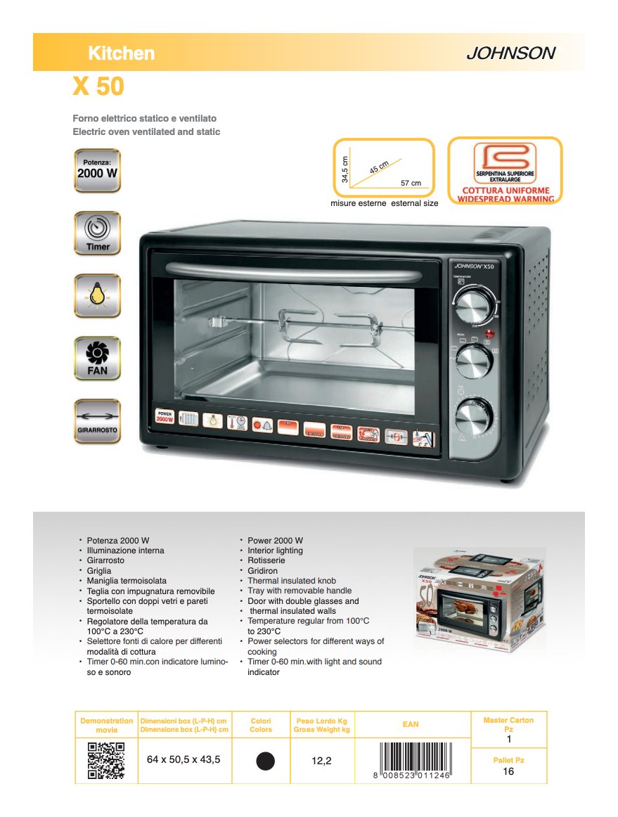 Forno elettrico 2000W (50Lt) SERIE X X50 Assortito