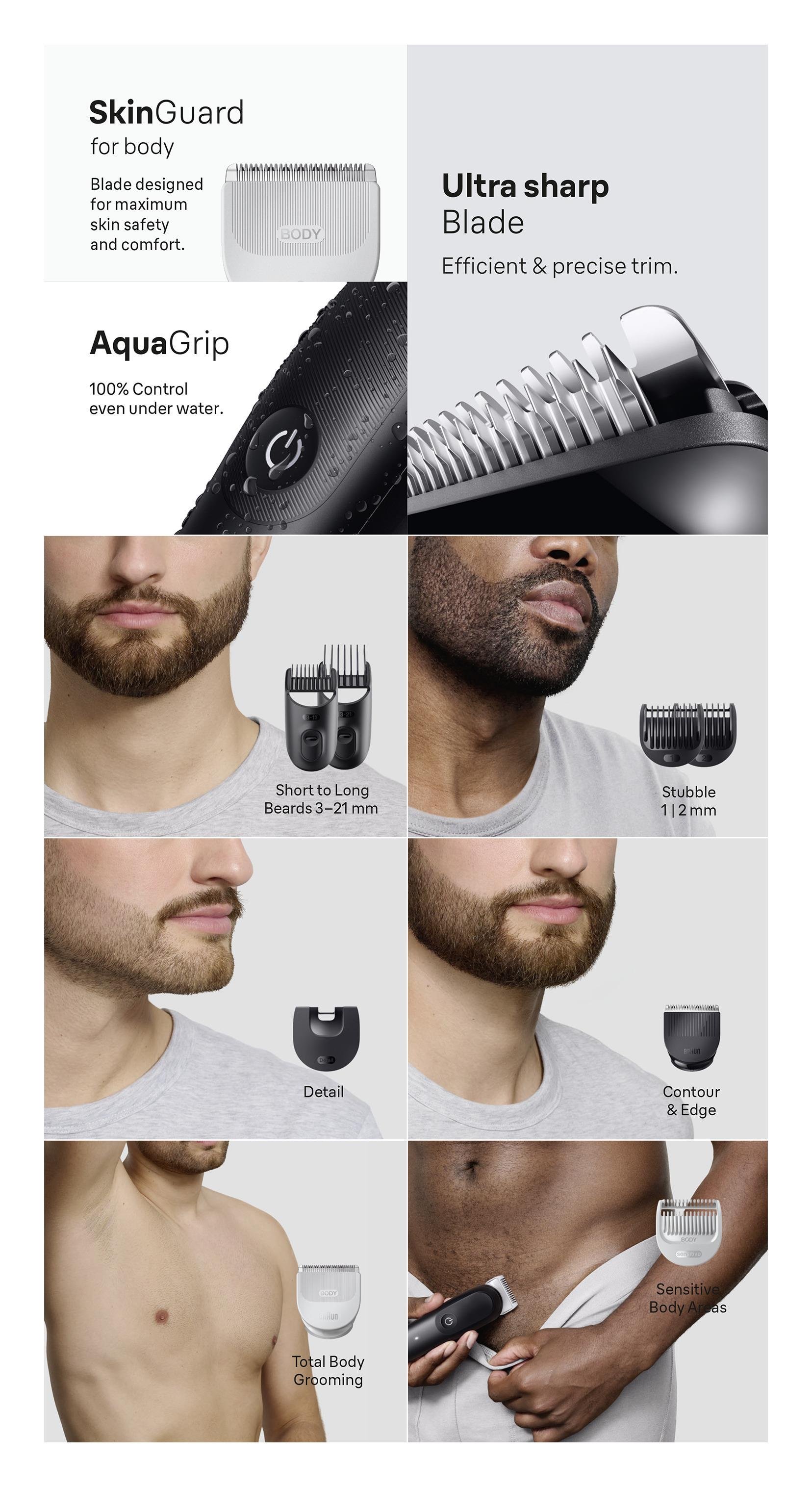 Il set di strumenti 9in1 ti permette di rifinire senza sforzo barba, naso e orecchie, tagliare i capelli e radere tutto il corpo. Regolazione altezza taglio da 0,5 a 21mm