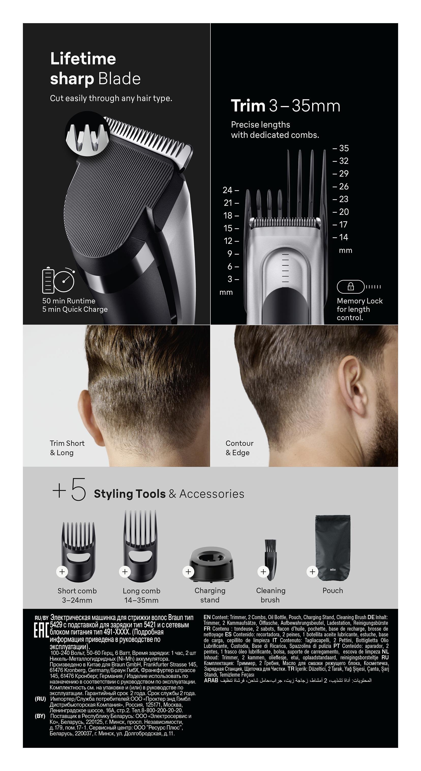 Ottieni facilmente il taglio di capelli che desideri da casa con il tagliacapelli uomo Braun. Le lame affilate a vita rendono facile il taglio dei capelli a qualsiasi lunghezza o spessore. Con 2 pettini, 17 impostazioni di lunghezza e Memory Lock per fissare la tua ultima impostazione. Regolazione altezza taglio da 3 a 35mm
