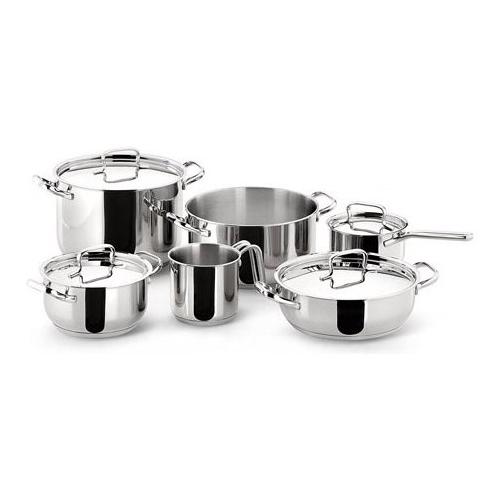 Batteria 10 pezzi con fondo incapsulato lagoseal® plus a tre strati (acciaio - alluminio- acciaio) è adatto ad ogni piano di cottura e favorisce una perfetta diffusione del calore, riducendo al minimo il rischio di attaccamento dei cibi
