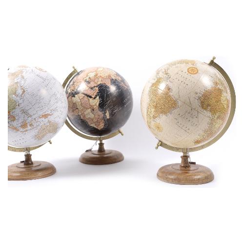 Mappamondo decorativo con base di supporto in legno color noce e meridiano in ottone, fornisce un tocco accogliente all’atmosfera di casa vostra. Il globo decorativo è un prodotto unico, informativo e di apprendimento che fornisce conoscenze sul mondo e puoi anche regalare questo pezzo educativo ai tuoi cari. Otterranno consapevolezza sulla terra, sul pianeta e sulla sua geografia. Vedi oceani, mari, principali città, paesi e aree geografiche capitali, isole e continenti . Cartografie curate dati affidabili e ricchi di dettagli. Progettato in modo unico con colori sorprendenti, la mappa è chiaramente stampata, facilmente consultabile, la sfera ruota sul proprio asse. Questo articolo è assortito nelle varianti mappa cartografia in stile antico, nero o oppure bianco.