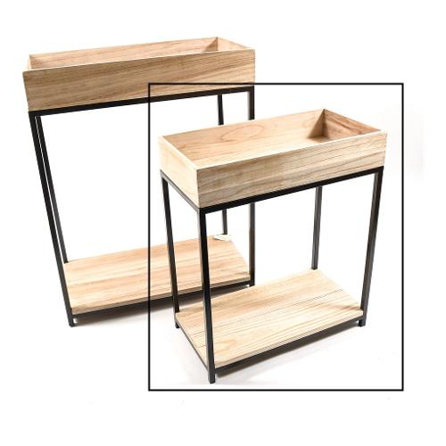 Porta piante metallo vaschetta rialzata (50x26x77cm) Nero e Natural 17577