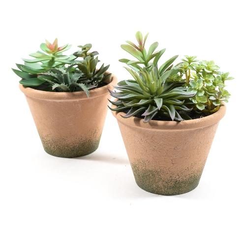 Pianta artificiale Grassa con vaso cotto (16x18cm) Assortito 33182
