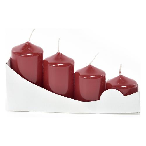 Mercury Set candele 4 pz Pillar Lucid h 40-85 mm (4cm) CHRISTMAS Bordeaux 95172
