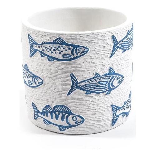 Mercury Vaso cemento (14x13cm) cilindro MARE Azzurro e Bianco 11479
