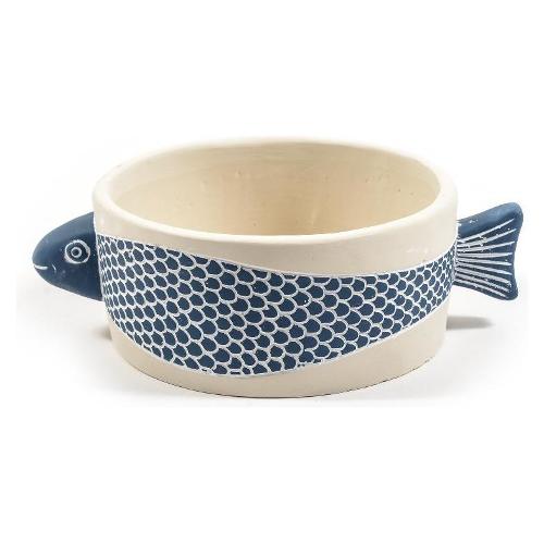 Vaso cemento (24,5x17,5x8cm) ciotola MARE Azzurro e Bianco 11578