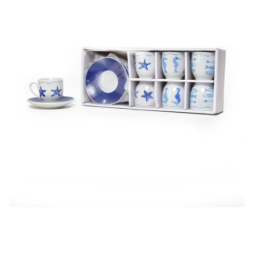Set tazzine caffè porcellana con piatto 6 pz (80ml) MARE Decori azzurri assortiti 23561