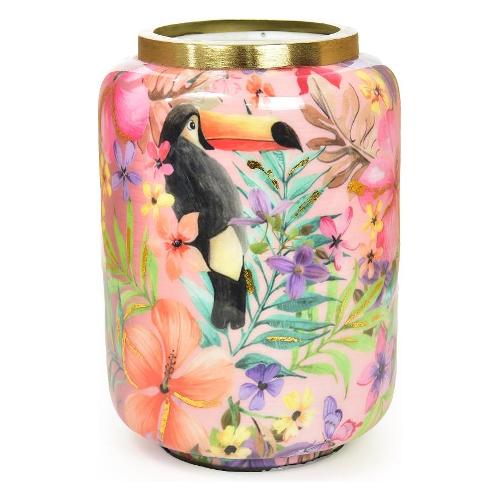 Vaso metallo (15x21,5cm) ENAMEL Oro decoro floreale 21215