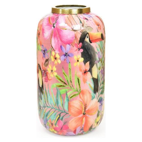Vaso metallo (17x31,5cm) ENAMEL Oro decoro floreale 21222