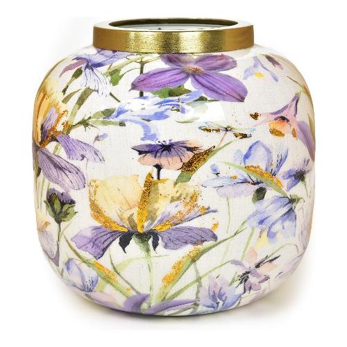 Vaso metallo (16,5x16cm) ENAMEL Oro decoro floreale 21062
