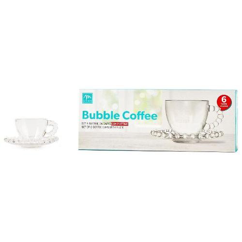Mercury Set tazzine caffè vetro con piatto 6 pz (100ml) Corona Trasparente 52349