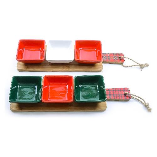 Set coppette Ceramica 3 pz (6cm) con tagliere bamboo 41x12 cm CHRISTMAS Assortito 65162