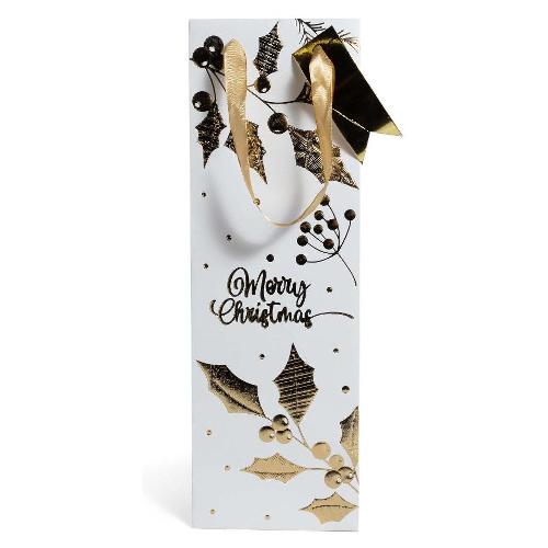 Confezione porta bottiglia (1 bottiglia) (12x12x38cm) Bianco e Oro 85415