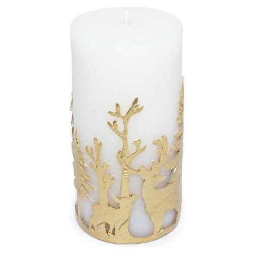 Candela decorativa Natale (1pz) CHRISTMAS Bianco e Oro 73375