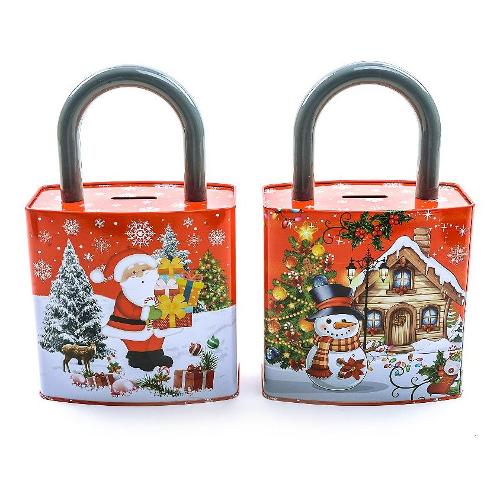 Salvadanaio Latta (16x9x26cm) con lucchetto CHRISTMAS Assortito 62819