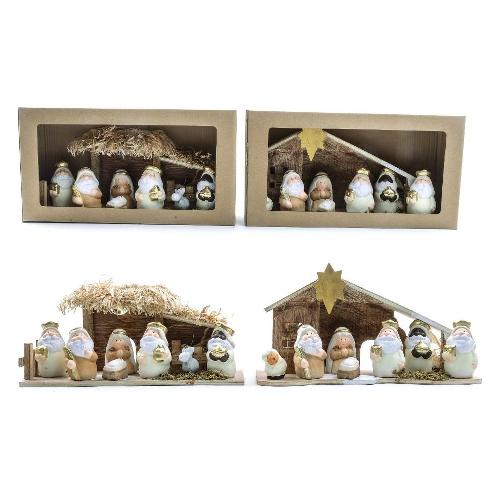 Mercury Natività con capanna e luci (20,5x8x14cm) Ceramica CHRISTMAS Assortito 55651