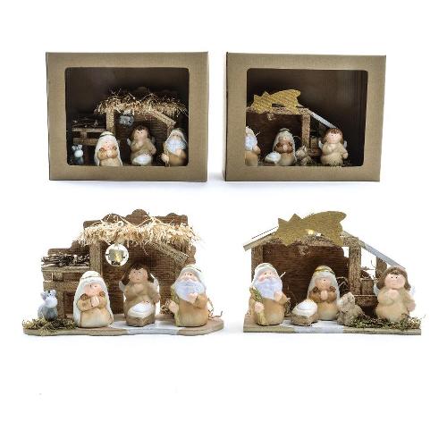 Natività con capanna e luci (31x9,7x13,5cm) Ceramica CHRISTMAS Assortito 55668