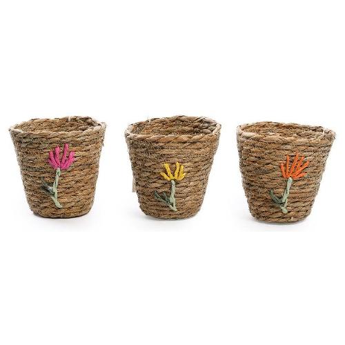Porta vaso fibra naturale decorato fiori (13x12cm) Assortito 03508