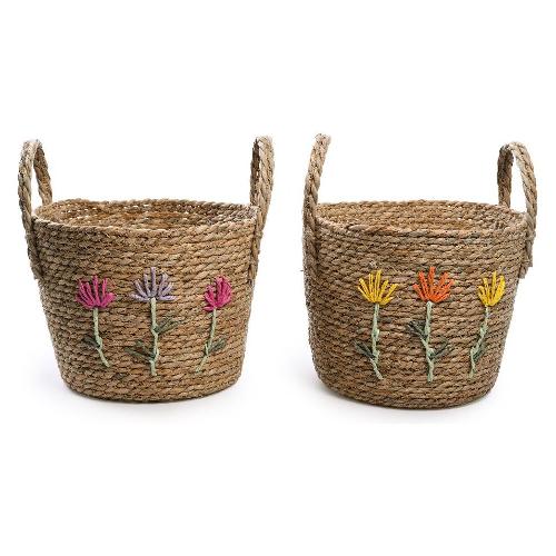 Porta vaso fibra naturale cesto decorato fiori (26x20cm) Assortito 03560