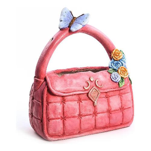 Vaso poliresina (33x17,5x37,5cm) Borsa fiorita Rosa 01528