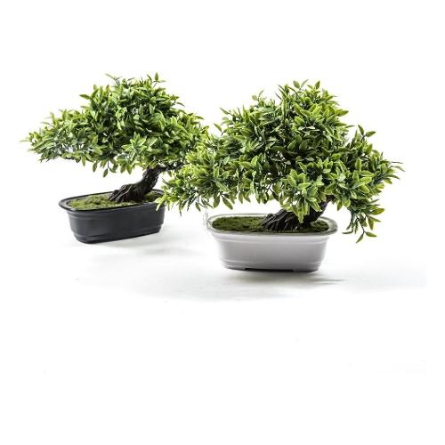 Pianta artificiale bonsai verde con vaso plastica (17x10x25cm) Assortito 32693