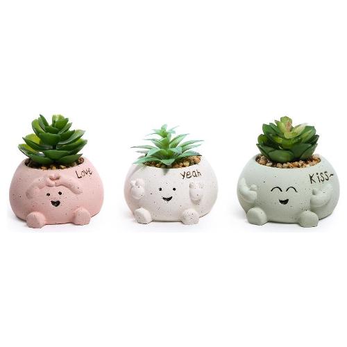 Pianta artificiale grassa con vaso cemento (8,8x8,5cm) Assortito 05366