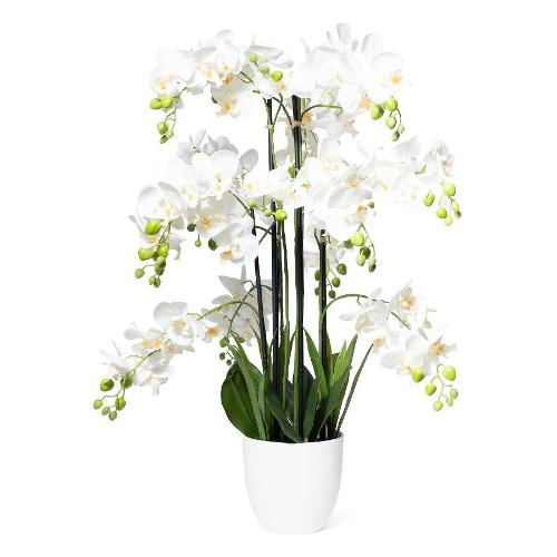 Pianta artificiale Orchidea bianca con vaso plastica (62x86cm) 35960