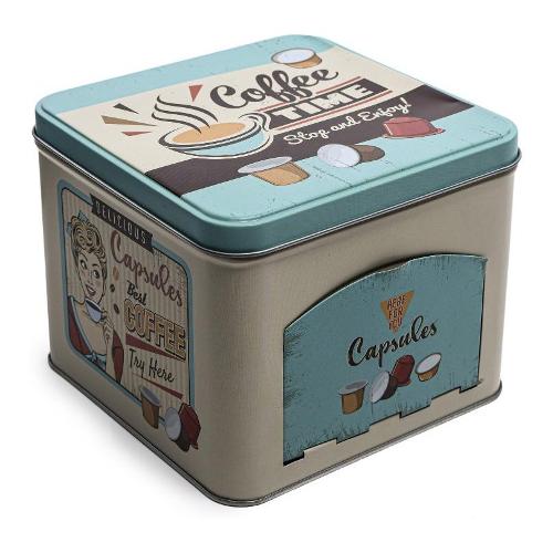Barattolo latta (15x15x12cm) portacapsule caffè Beige e Azzurro 10988