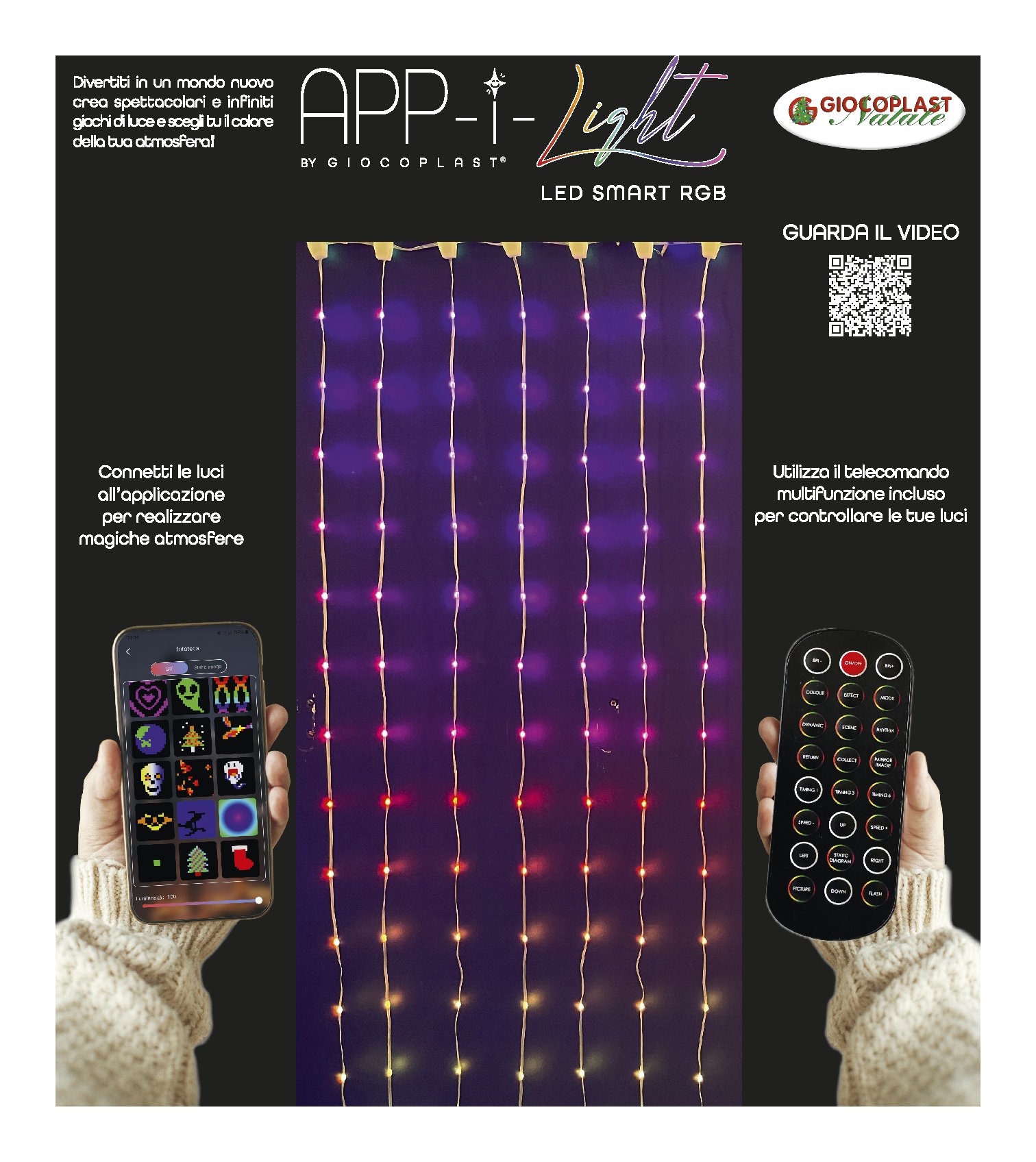 Giochi di luce con telecomando (incluso) o smartphone (non incluso)