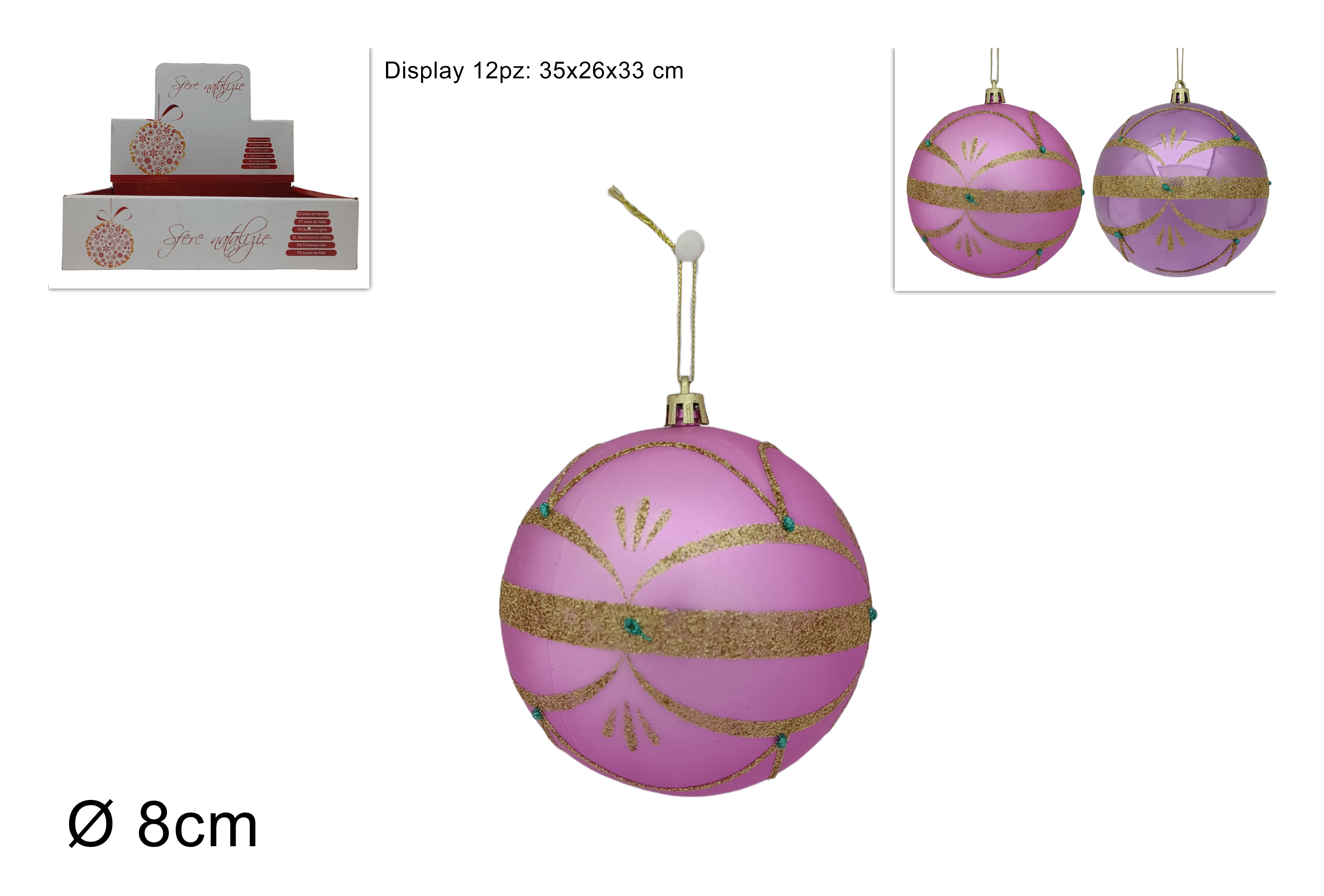 Pallina albero Natale (1pz-8cm) Plastica CHRISTMAS Assortito Lilla XNA23007681