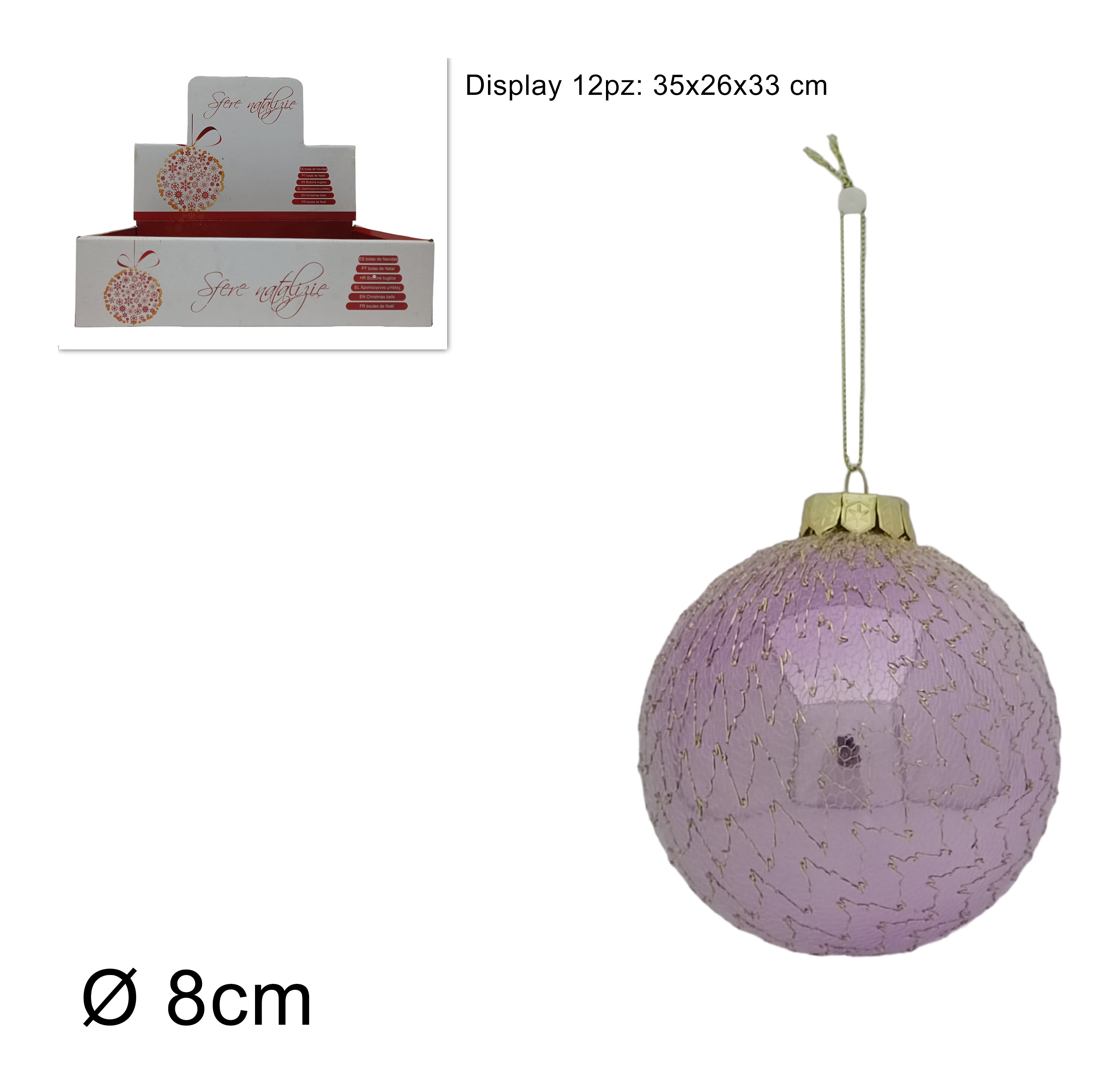 Pallina albero Natale (1pz-8cm) Plastica CHRISTMAS Assortito Lilla XNA23008541