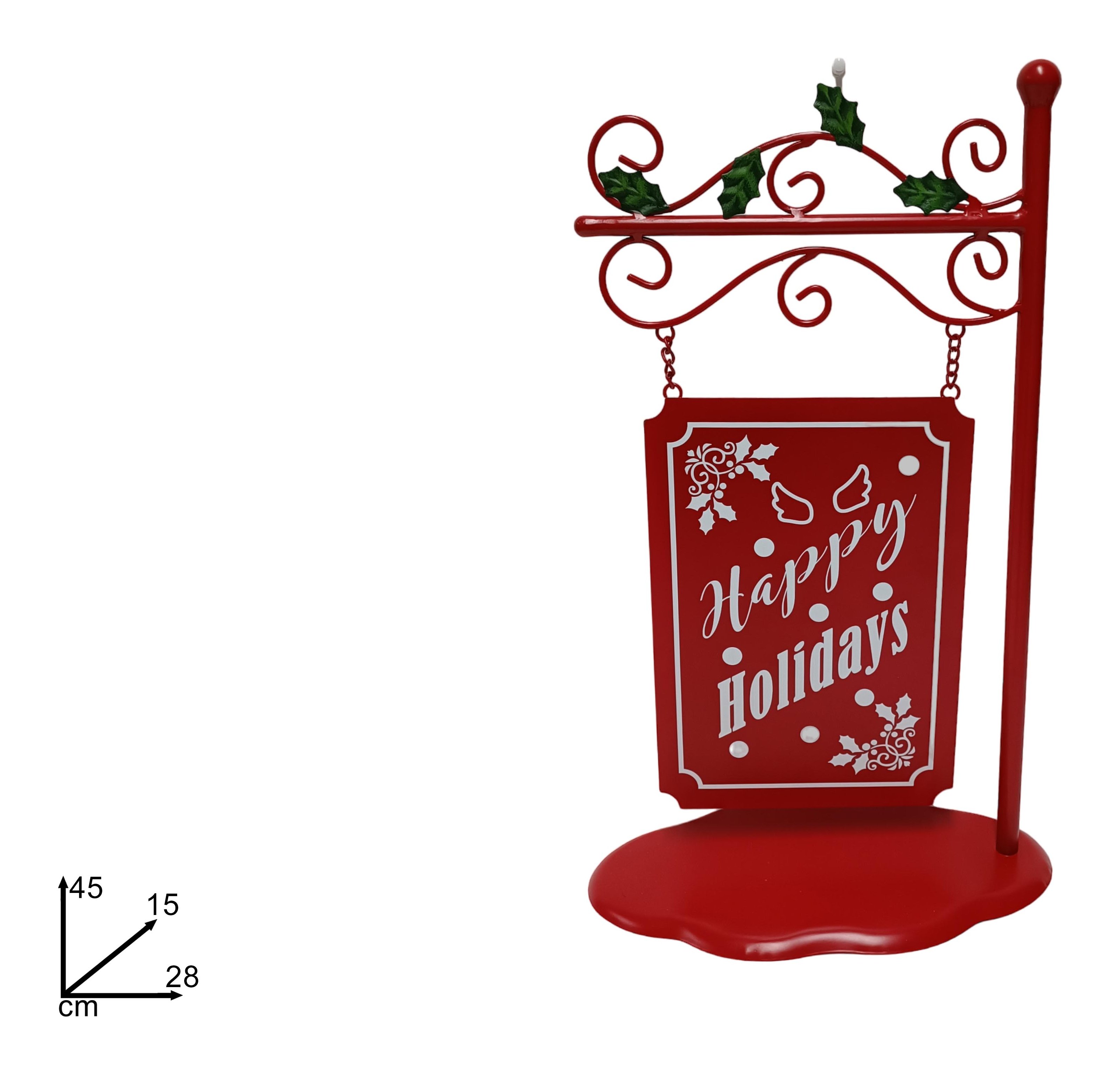 Insegna Happy Holidays Latta (28x15x45cm) (1pz) Rosso XNA23059971