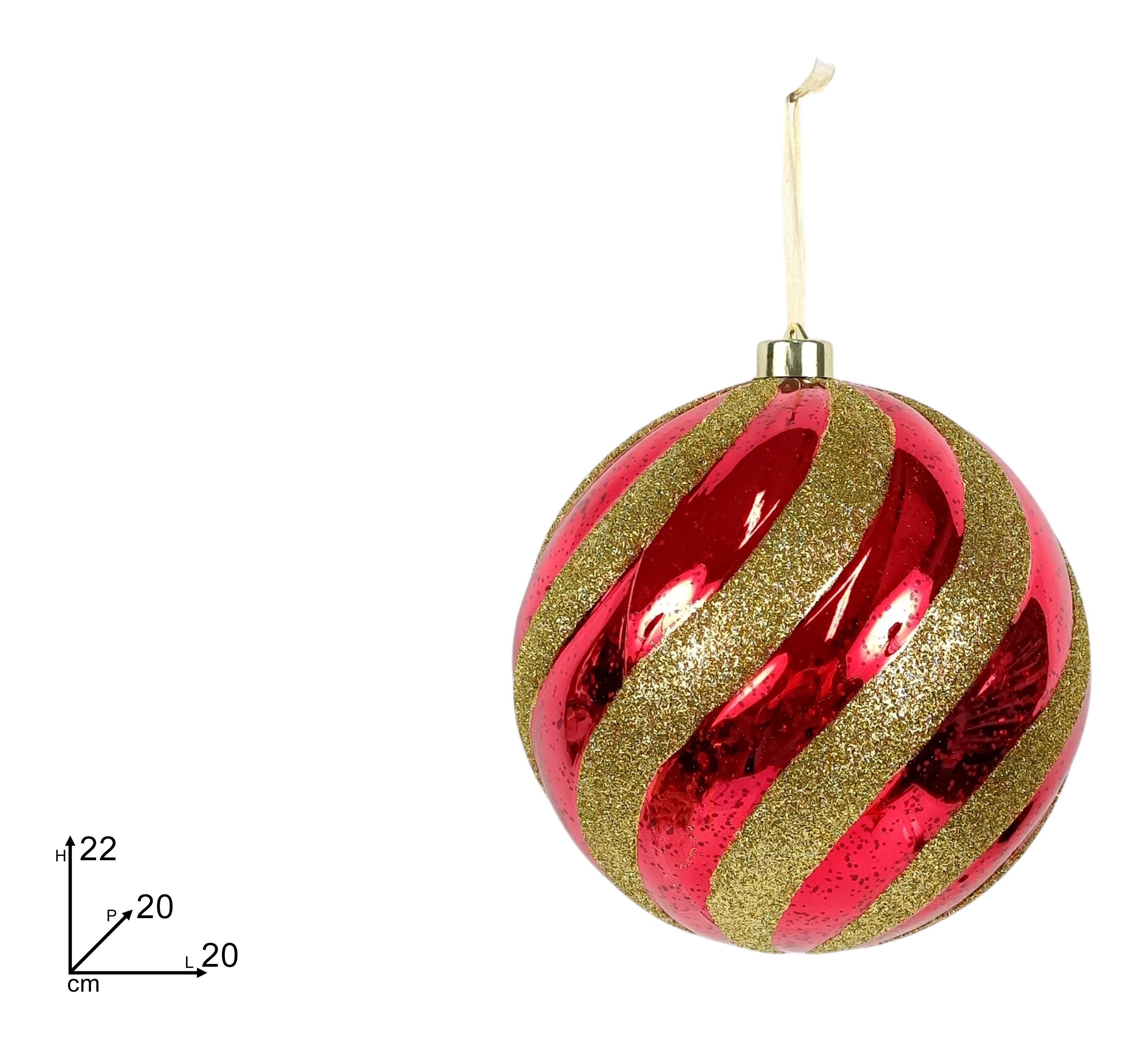 Pallina albero Natale (1pz-20cm) Plastica Rosso lucido e Oro XNA24027691