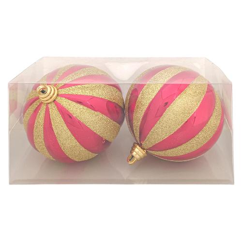 Set palline albero Natale (2pz-15cm) Plastica Rosso lucido e Oro XNA24049561