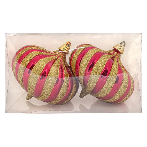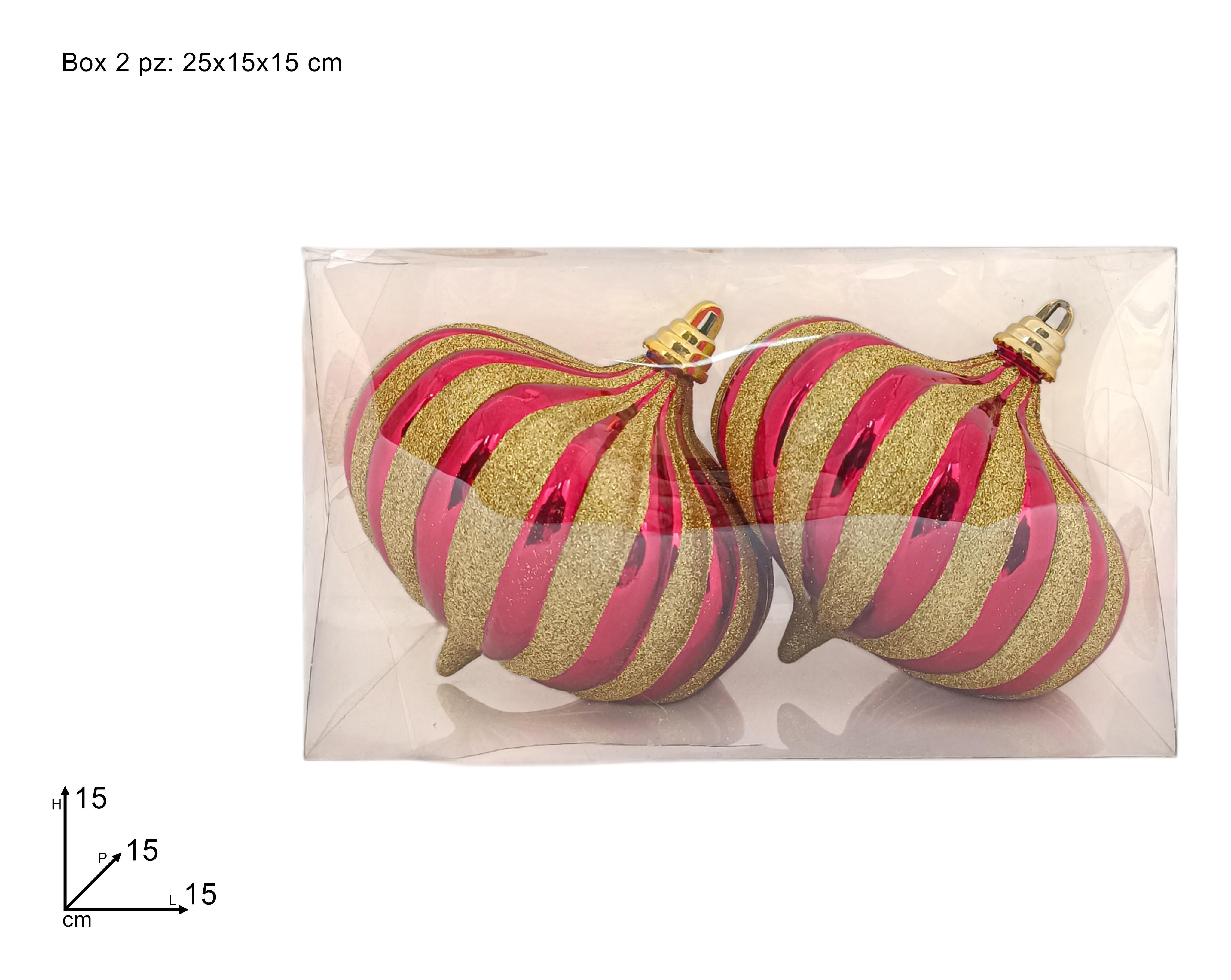 Due Esse Christmas Set palline albero Natale (2pz-15cm) Plastica Rosso lucido e Oro XNA24049471