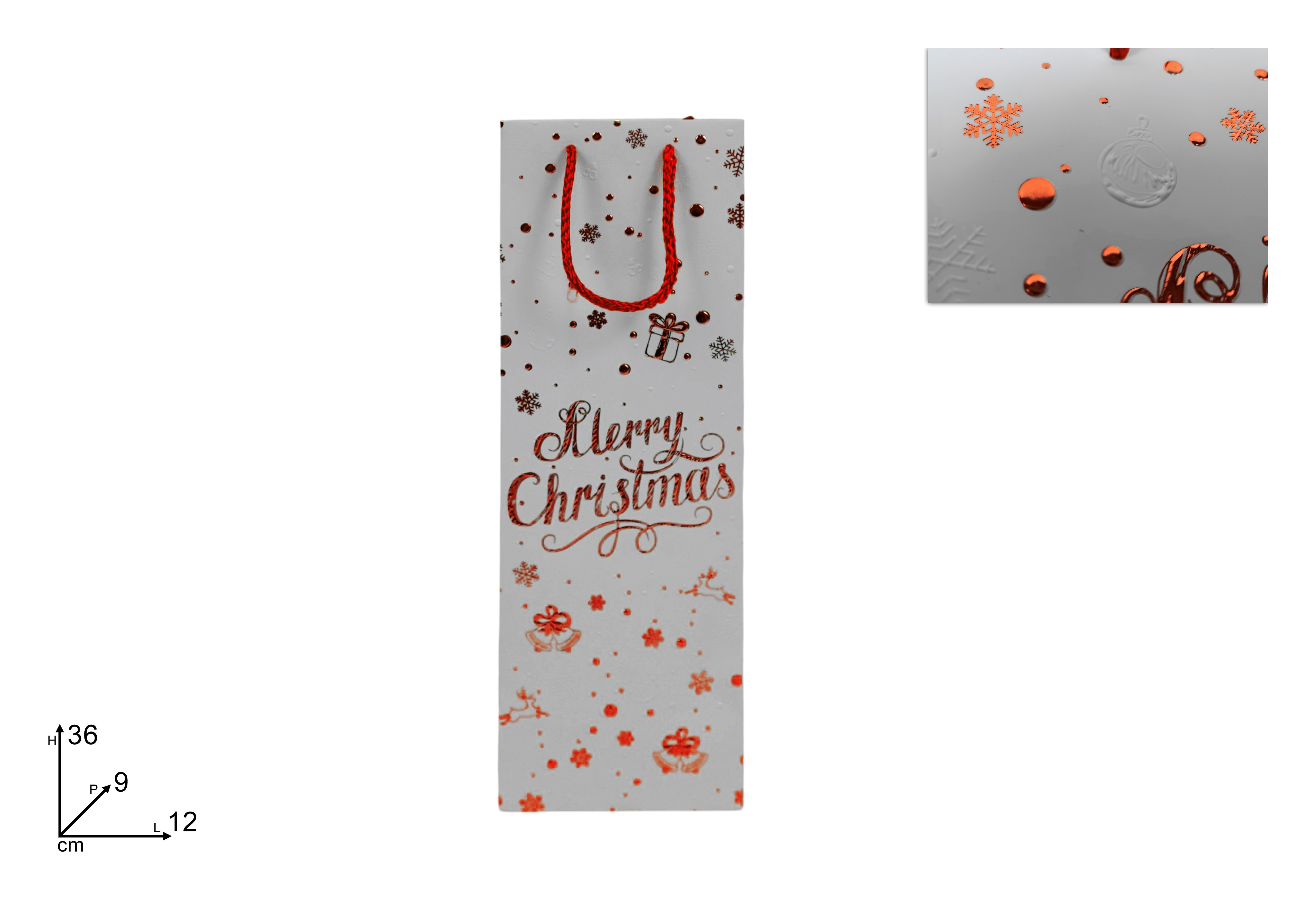Due Esse Christmas Confezione porta bottiglia (1 bottiglia) (12x9x36cm) Bianco e Rosso XNA24065831