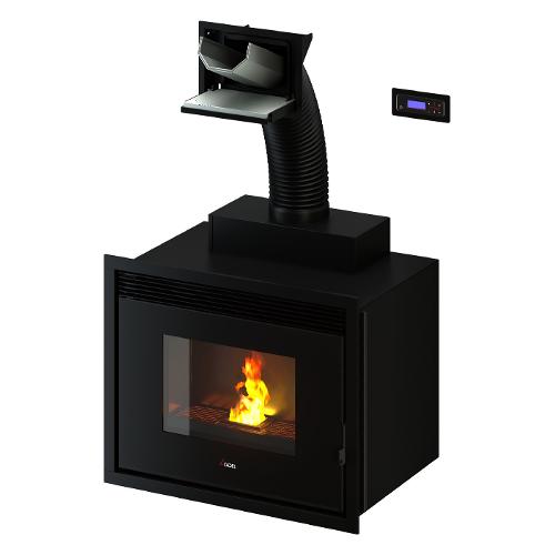 Saturno è un inserto idro dal design minimale con ampia visione del fuoco, completo di kit idraulico, ventilazione frontale e caricamento pellet orientabile. Wi-Fi e Bluetooth integrati