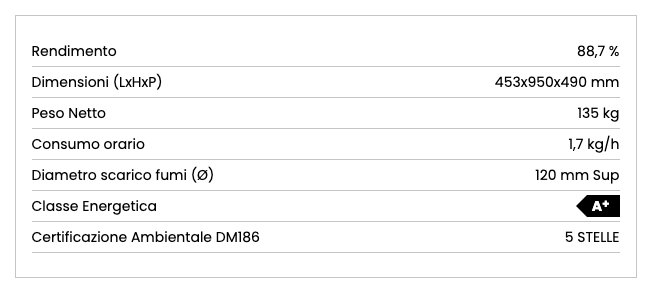 Altissimi rendimenti e bassissime emissioni, al top nella categoria, per un riscaldamento che rispetta l'ambiente. Il rivestimento in maiolica aggiunge un tocco di stile, mentre le dimensioni contenute la rendono ideale per diverse esigenze di installazione.