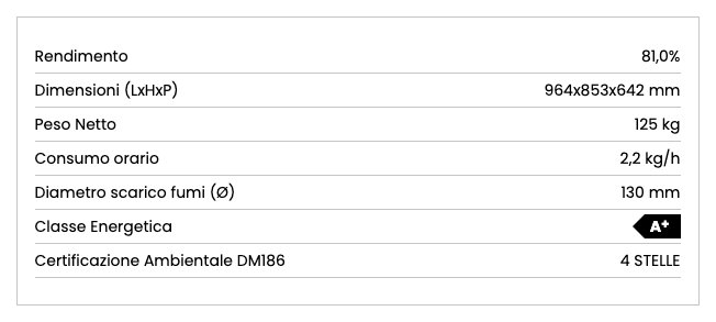 Design classico e funzionale, un forno da 41 litri e piastra in ghisa levigata, un comodo cassettone porta legna e i piedini che facilitano carico e pulizia.