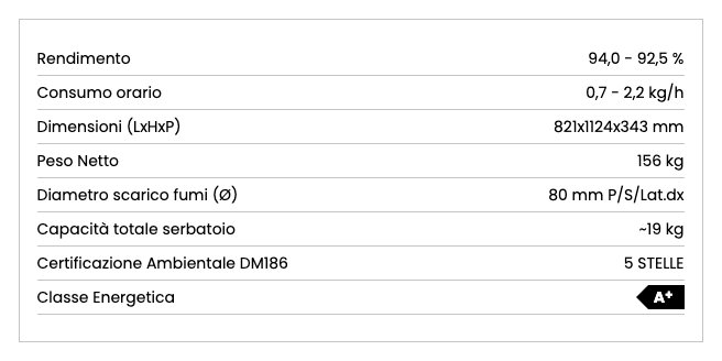 Stufa a pellet dal design compatto, ideale per spazi ristretti. Si adatta perfettamente a diverse esigenze d'installazione grazie alle molteplici opzioni per l'uscita della canalizzazione e dello scarico fumi. Ventilazione gestibile scegliendo tre diverse intensità e canalizzazione raggiunge 6 metri di distanza.