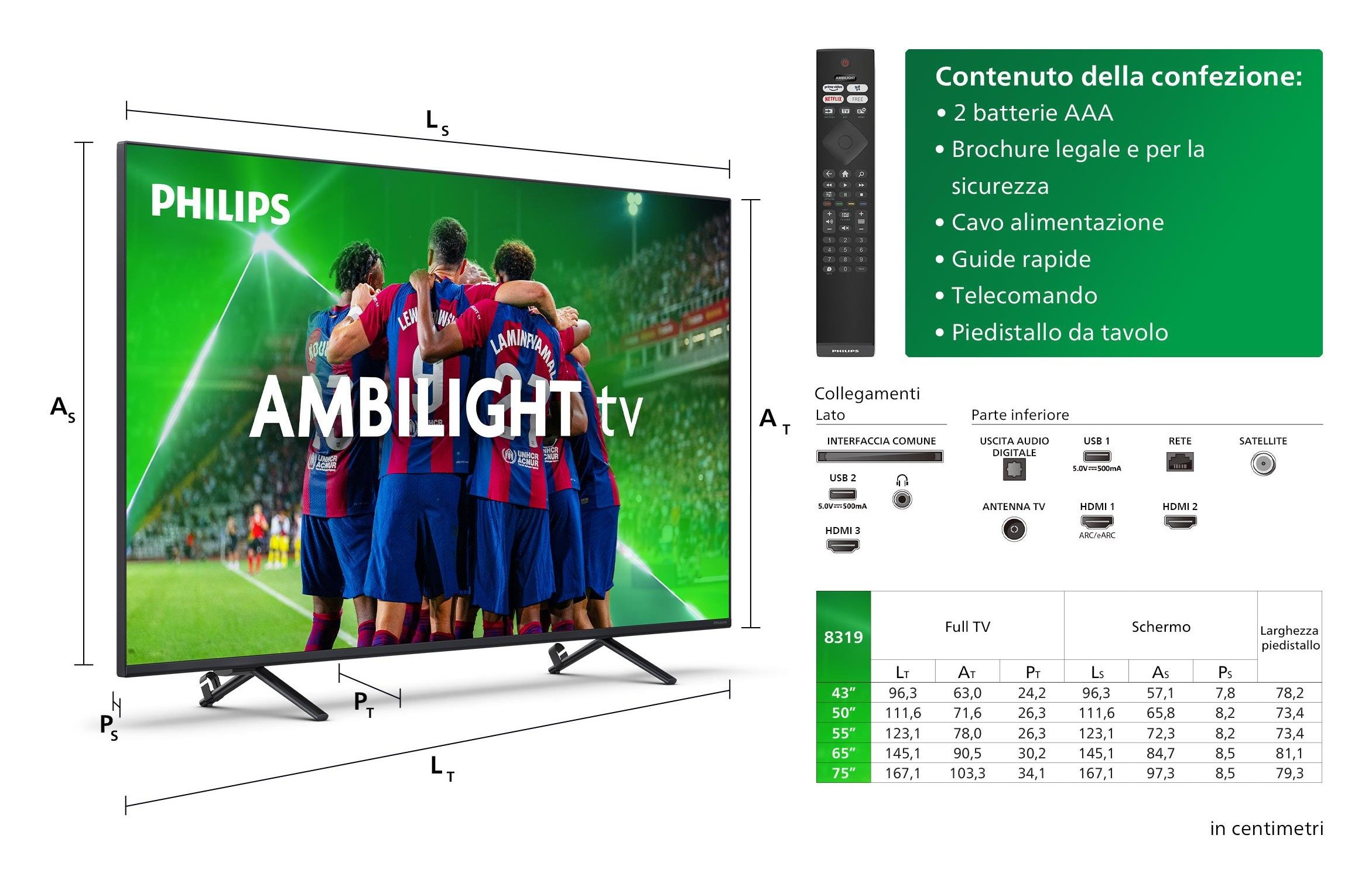 Tv 65" ( LED ) Titan OS AMBILIGHT Black 65PUS8319 12